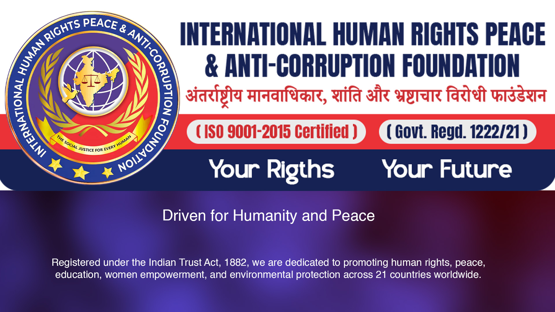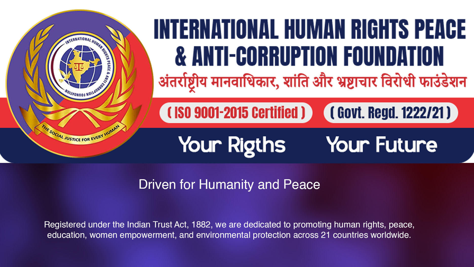 Welcome to International Huma Rights Peace & Anti-Corruption Foundation, a dynamic, community-driven non-governmental trust dedicated to driving positive change across India. Established with a mission to empower the underprivileged and provide a platform for grassroot innovation, we are committed to building a better tomorrow.
